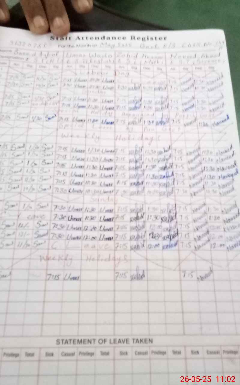 | Name: Sa**** Iq**** Designation: (School Headmaster's/Headmistress's) EST Phone/Cell Number: 03**** |