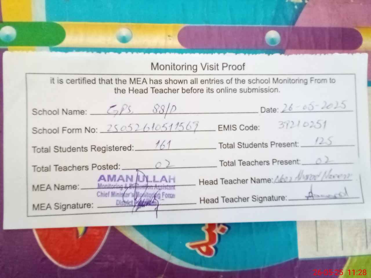| EMIS Code: 39210251 | Name of School: GPS 88/D | |||