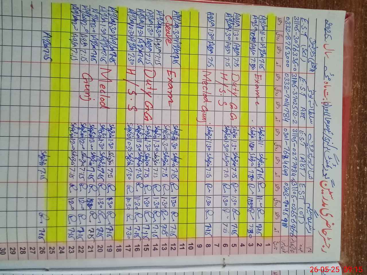 | 31**** | Su**** Ko**** | 3 | 1 | 0 | 0 | 0 | 0 | 0 | 0 | 0 | 0 | 0 | Exam Duty |