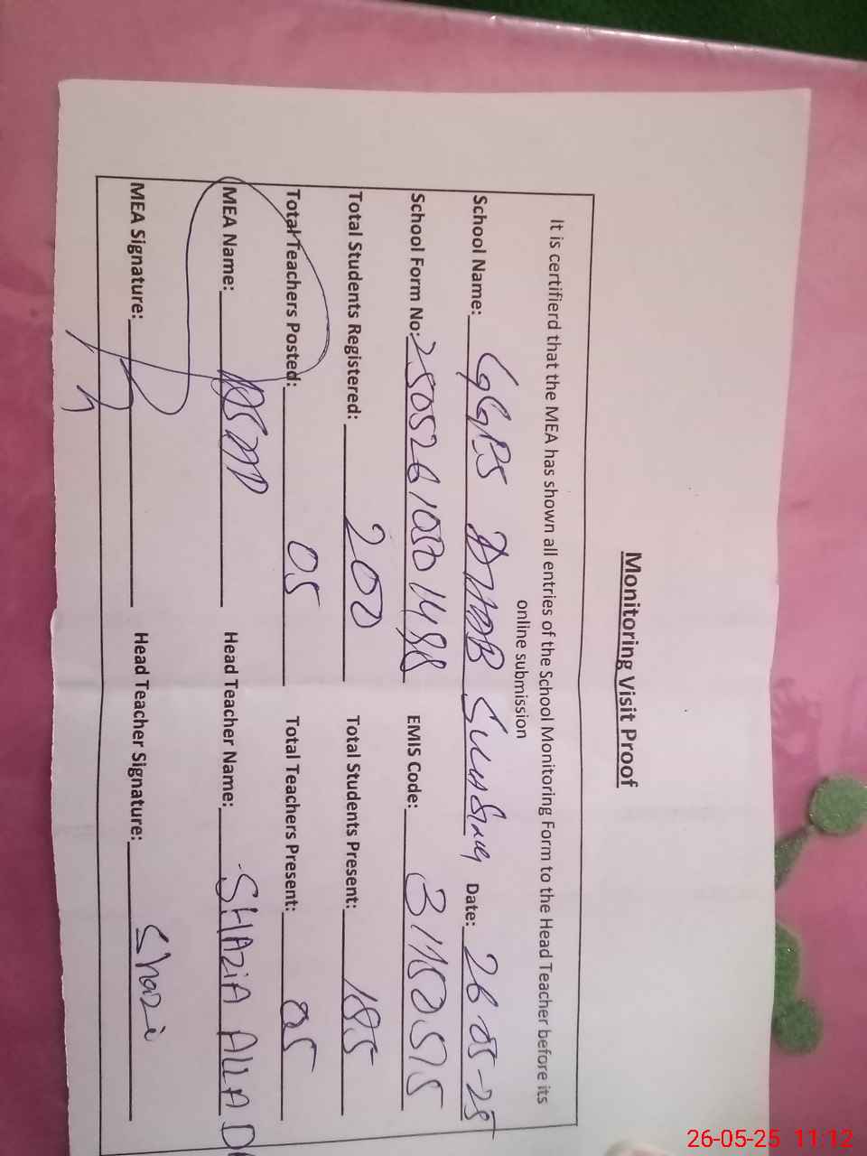| Certified that this School was Inspected by the Undersigned MEA/DMO Today and the Information Stated Above is as Per Record. | |||||