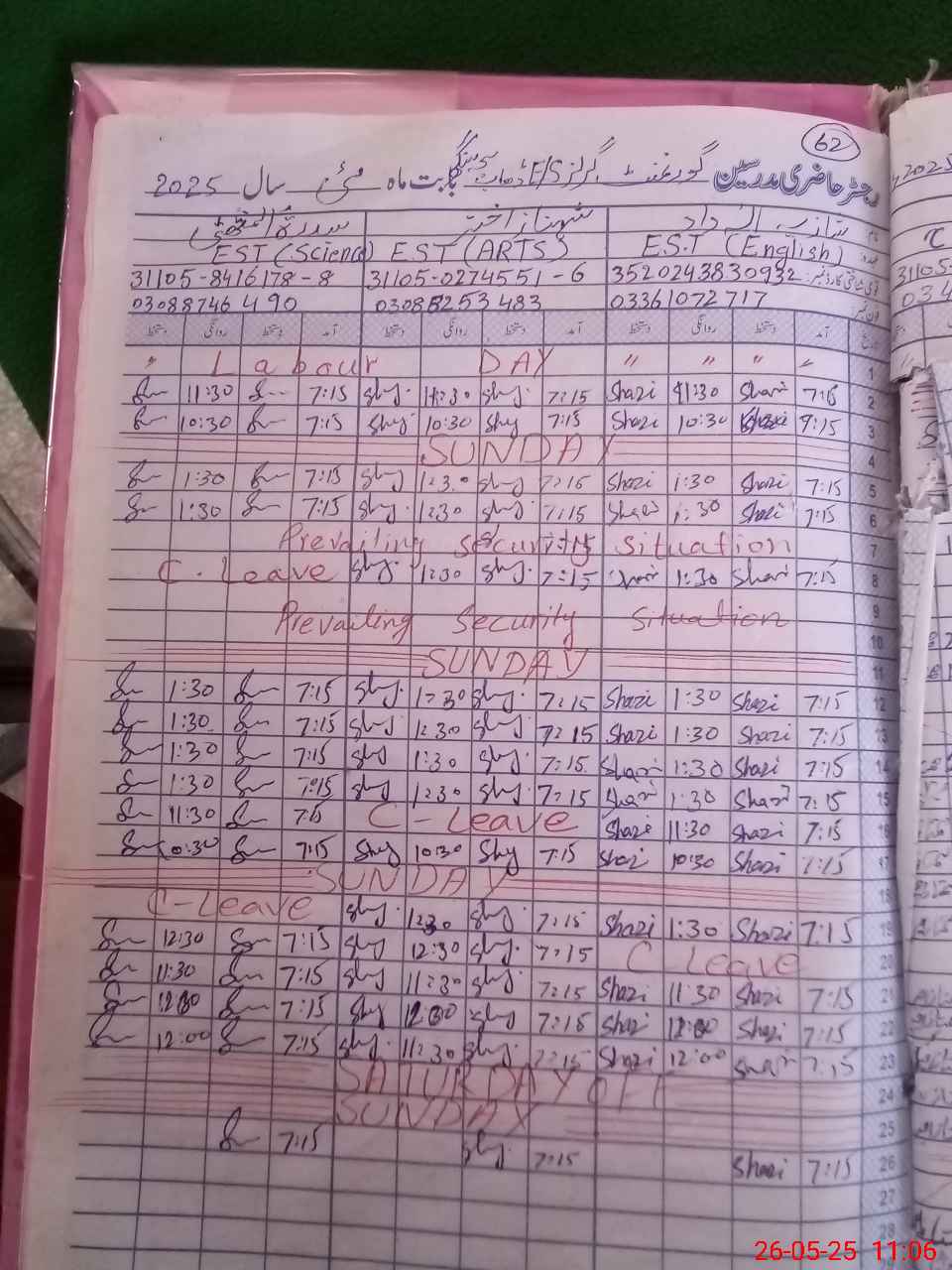 | 31**** | Sh**** Ta**** | PST | Regular | 0 | 0 | 0 | 0 | 0 | 0 | 0 | 0 | 0 | Exam Duty |
