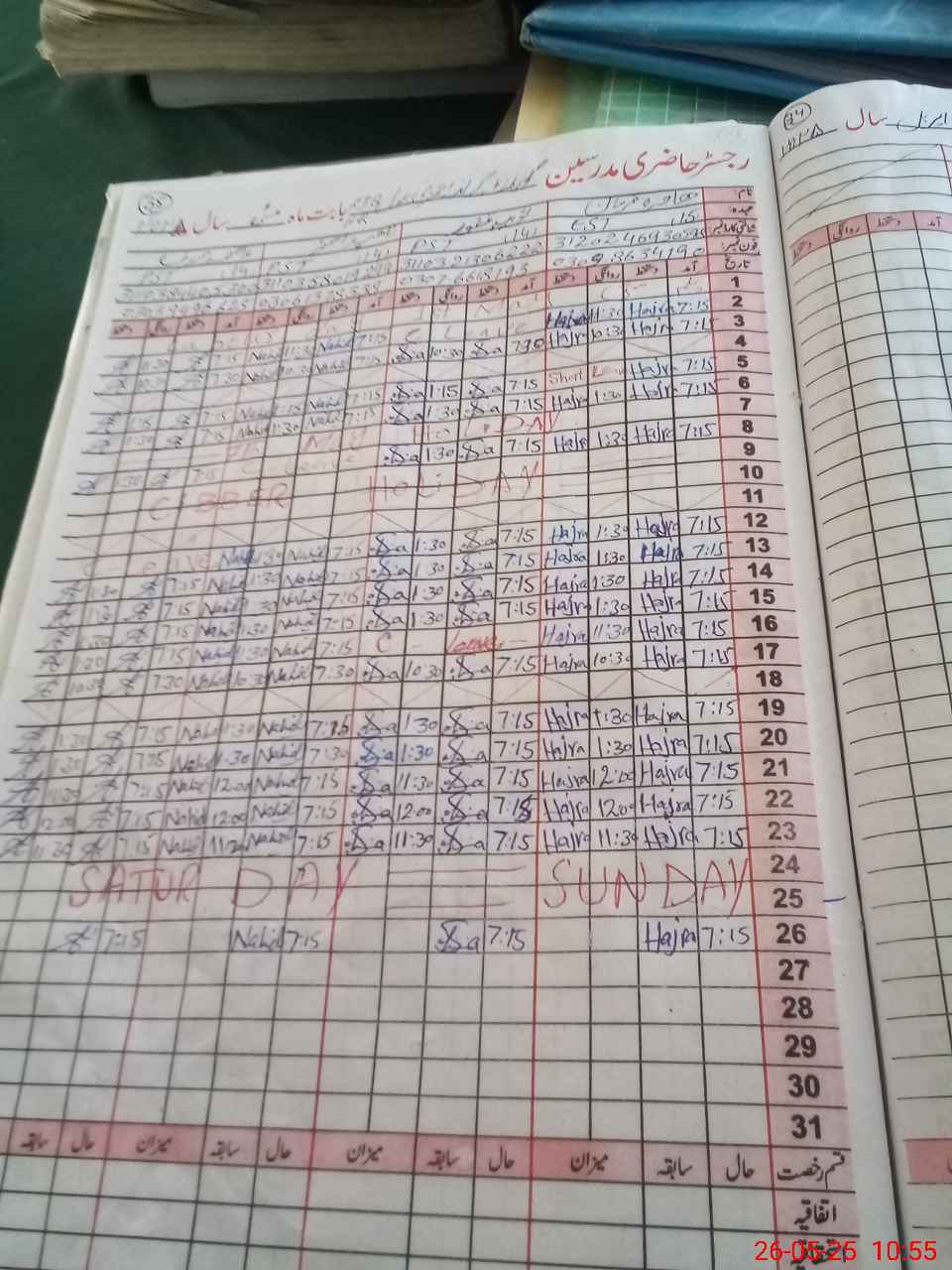 | Leave | Duty | Absent | Maternity | Medical | Ex- Pak |