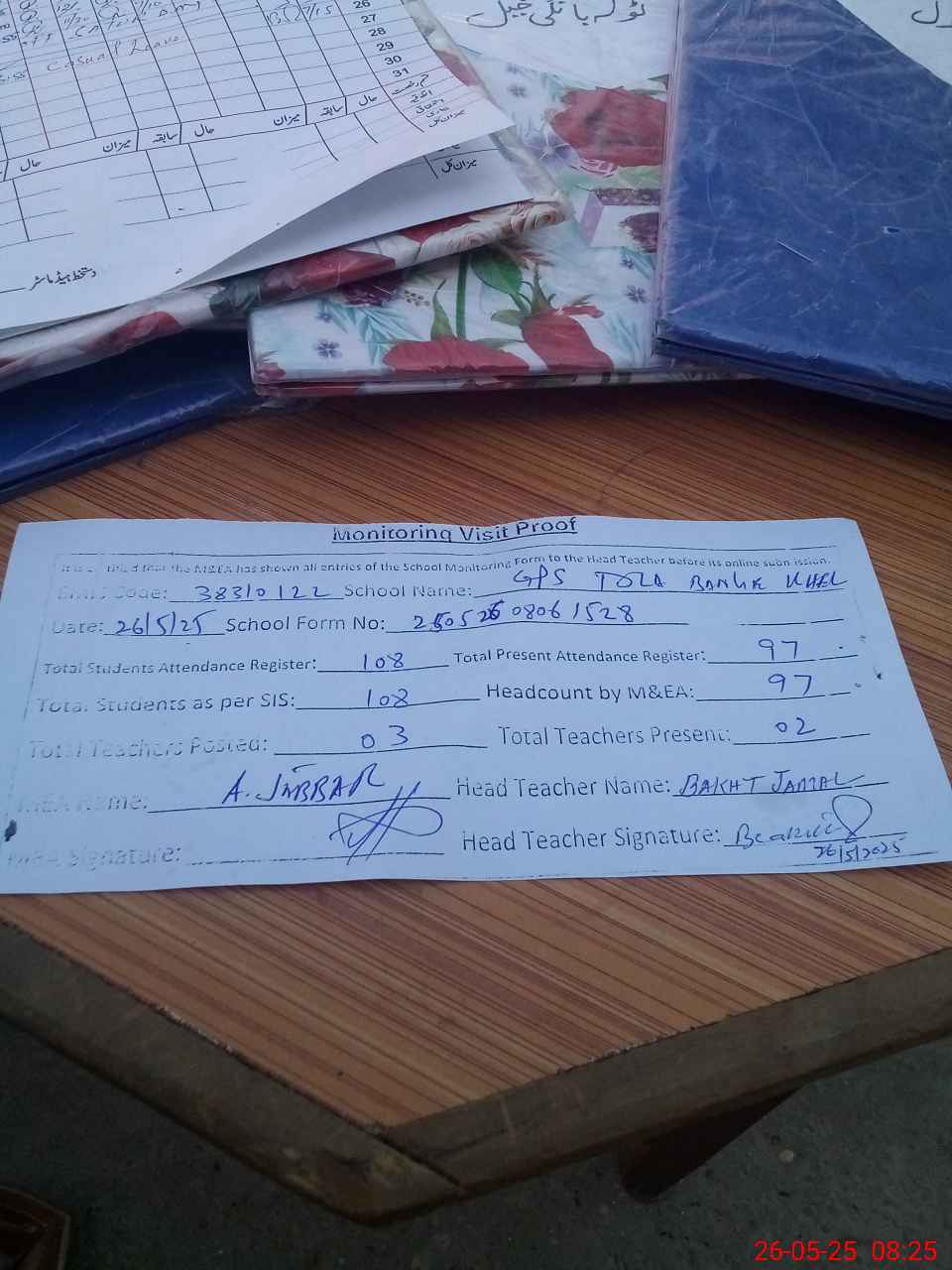 | EMIS Code: 38310122 | Name of School: GPS TOLA BANGE KHEL | |||