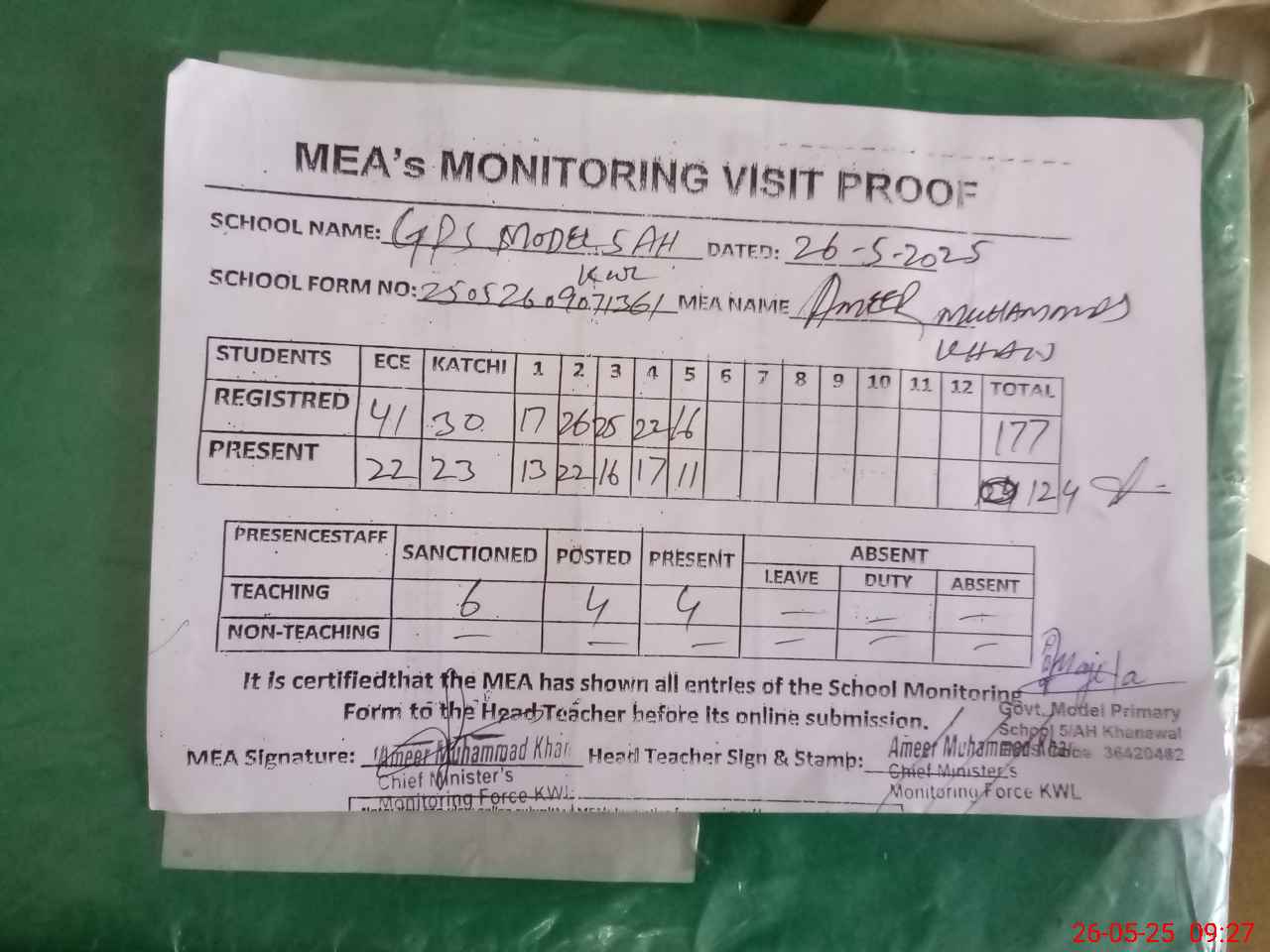 | EMIS Code: 36420402 | Name of School: GPS MODEL 5/AH, KHANEWAL | |||