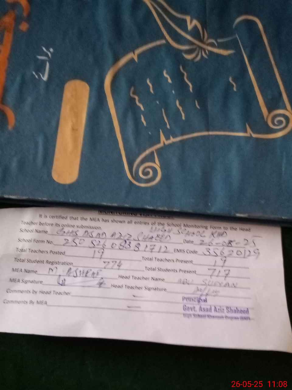 | EMIS Code: 35620129 | Name of School: GOVT. ASAD AZIZ SHAHEED HIGH SCHOOL KHANQAH DOGRAN | |||