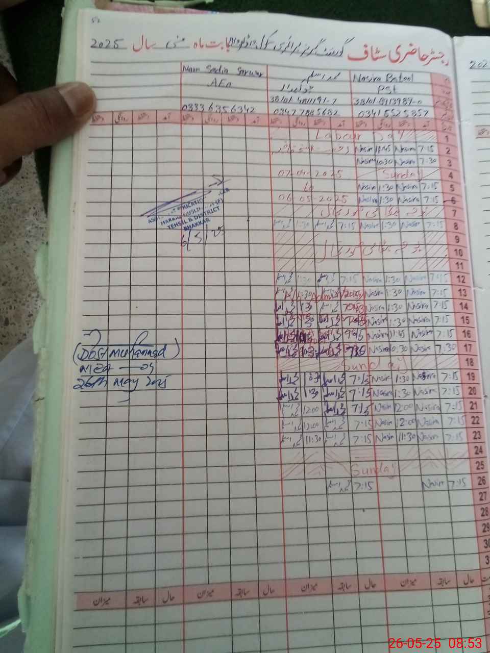 | Name: Na**** Ba**** Designation: (School Headmaster's/Headmistress's) PST Phone/Cell Number: 03**** |