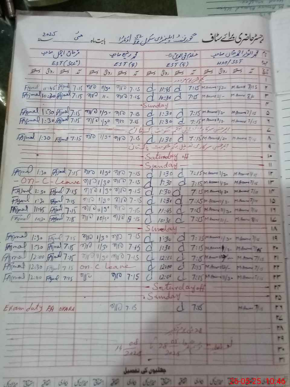 | 35**** | Fa**** Aj**** | 3 | 1 | 0 | 0 | 0 | 0 | 0 | 0 | 0 | 0 | 0 | Exam Duty |
