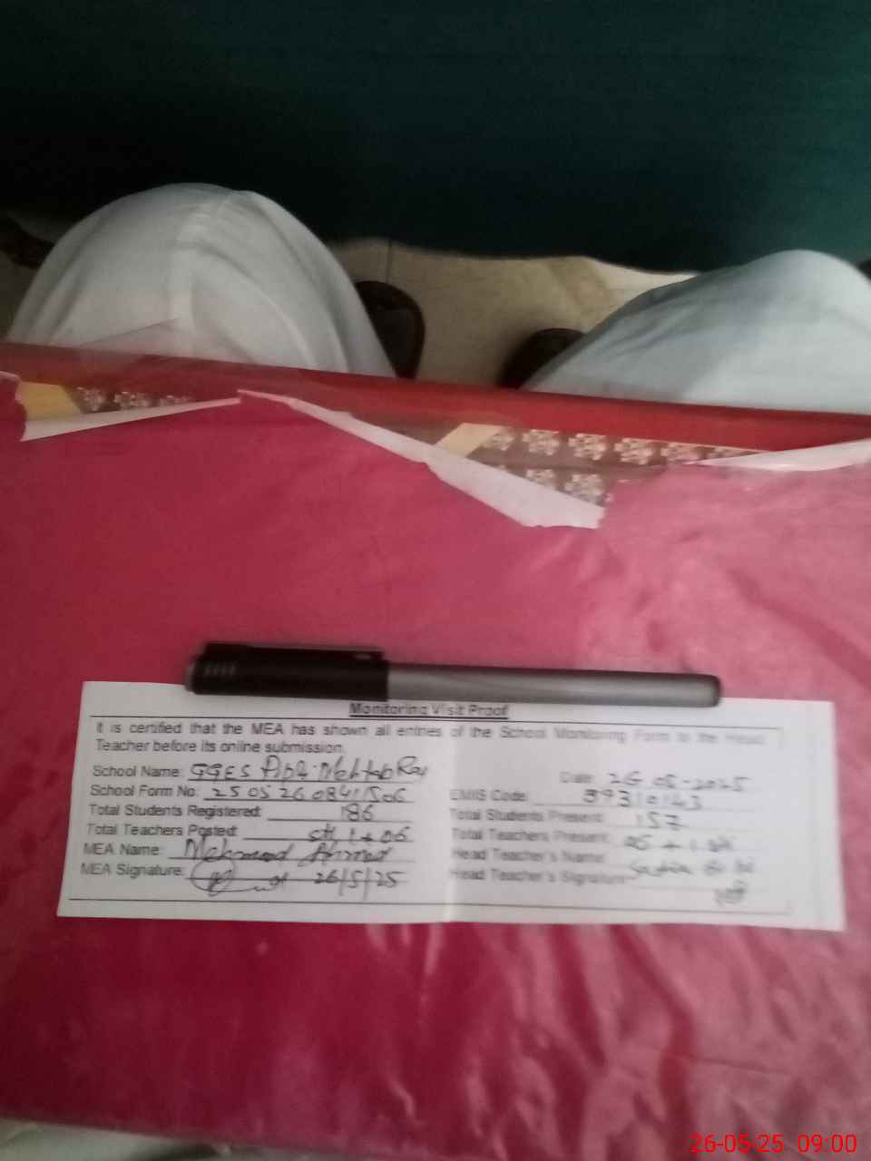 | Certified that this School was Inspected by the Undersigned MEA/DMO Today and the Information Stated Above is as Per Record. | |||||