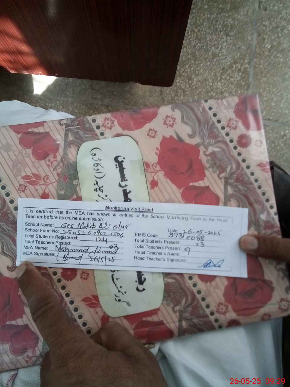 | Certified that this School was Inspected by the Undersigned MEA/DMO Today and the Information Stated Above is as Per Record. | |||||