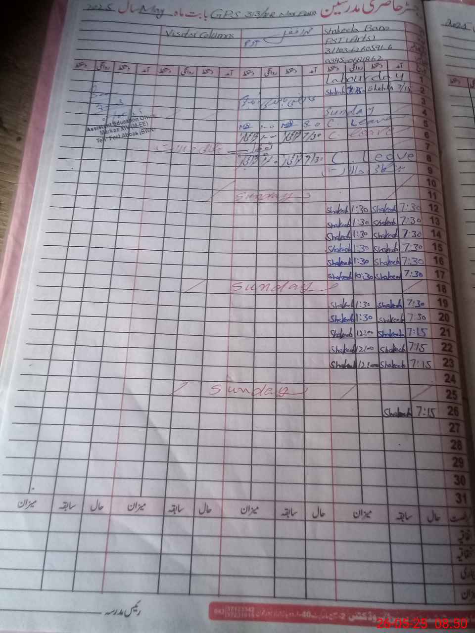 | Name: Sh**** Designation: (School Headmaster's/Headmistress's) PST Phone/Cell Number: 03**** |