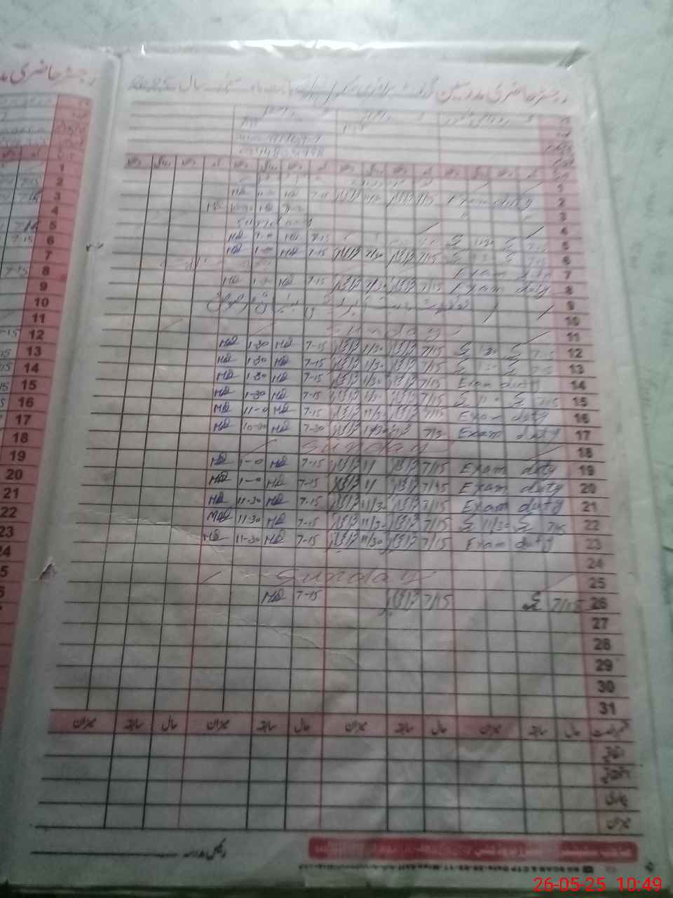 | CNIC | Full Name | Designation | R/C | Absence During Last Calender Month |