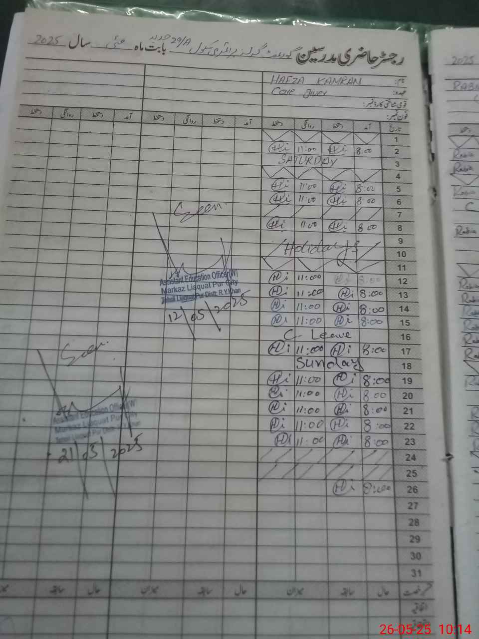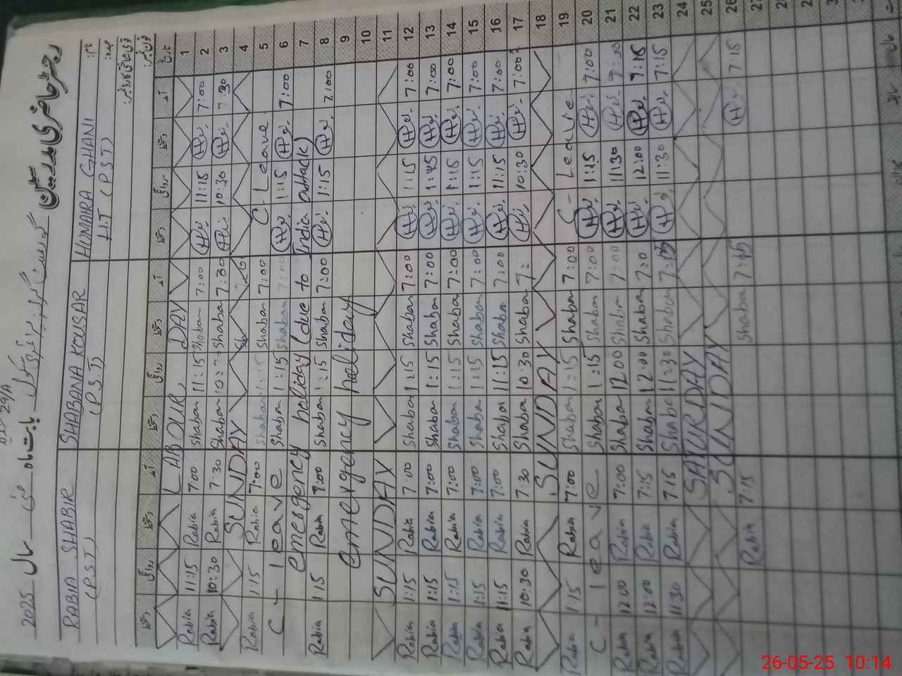 | CNIC | Full Name | Designation | R/C | Absence During Last Calender Month |