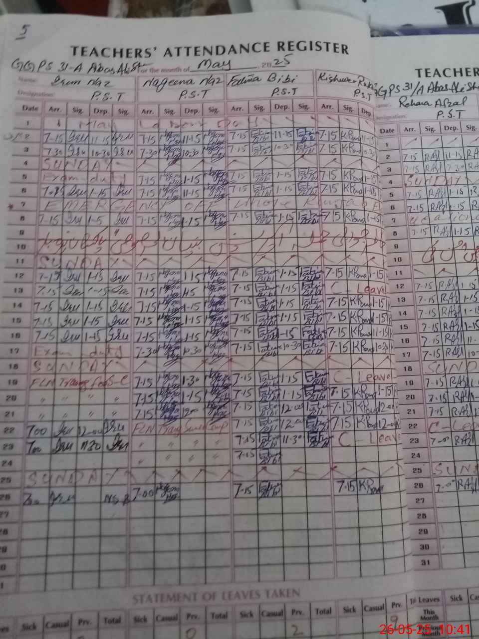 | Leave | Duty | Absent | Maternity | Medical | Ex- Pak |