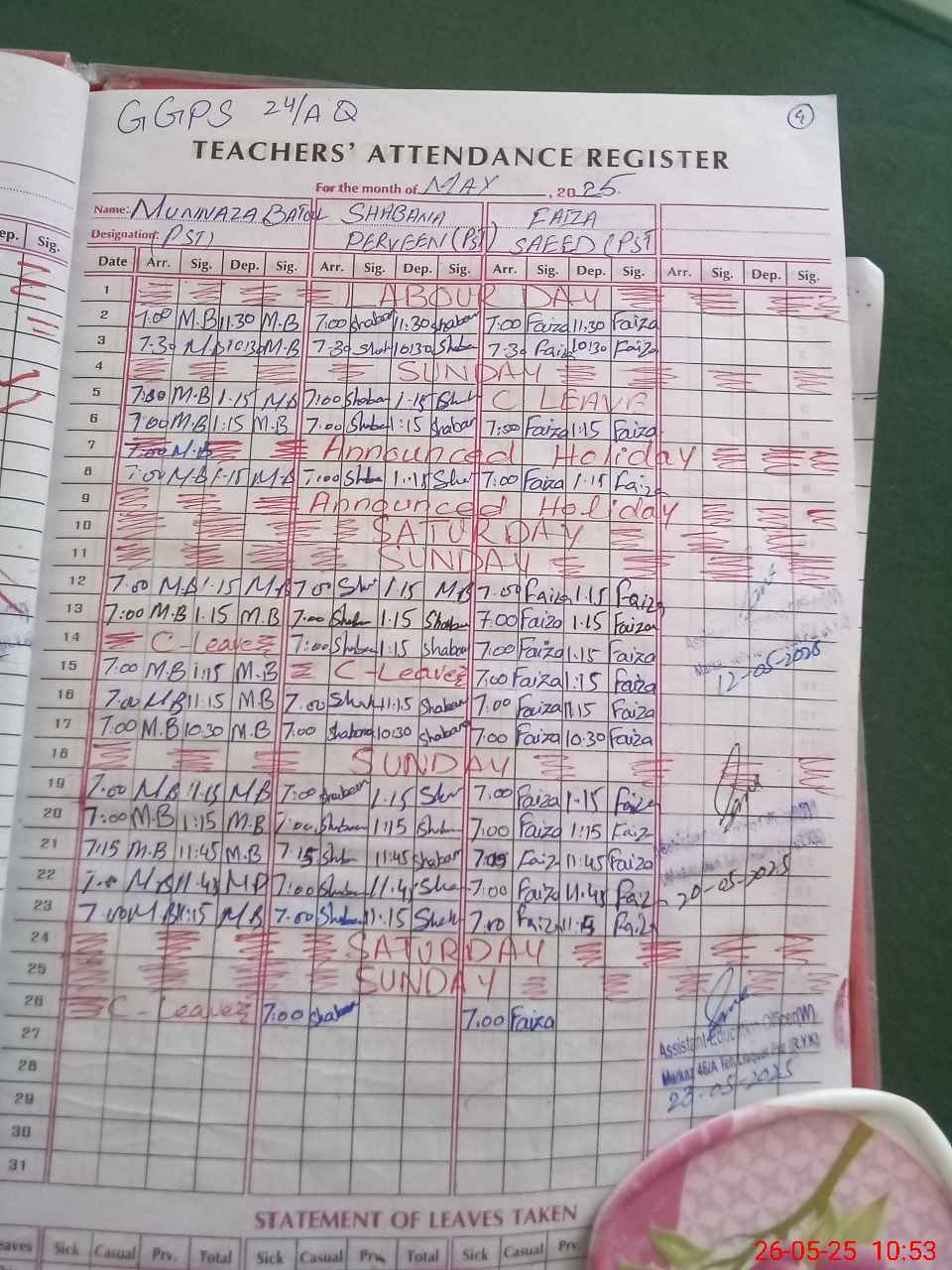 | Leave | Duty | Absent | Maternity | Medical | Ex- Pak |