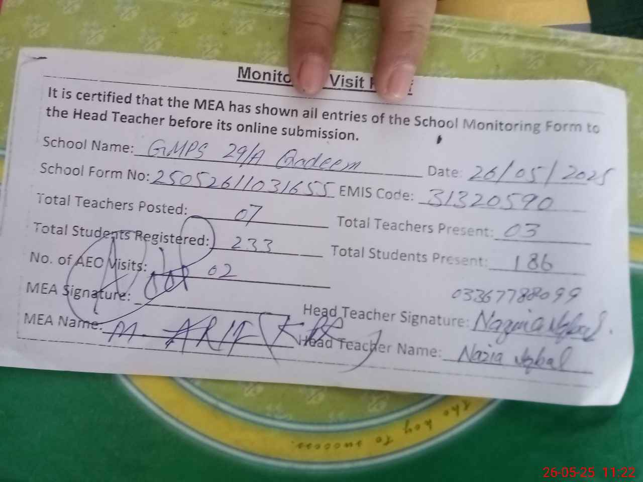 | EMIS Code: 31320590 | Name of School: GMPS CHAK NO.29 QADEEM | |||