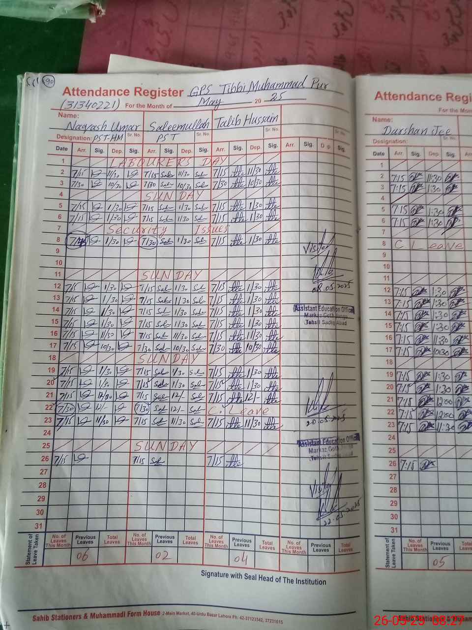 | Attendance Register | Head Teacher | MEA with School | Visit Proof |