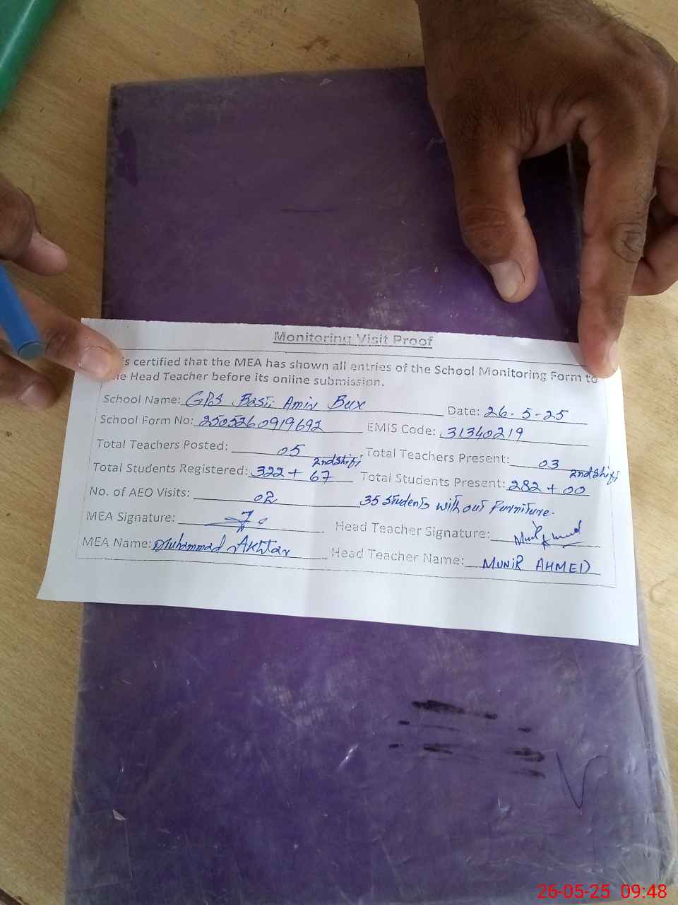 | EMIS Code: 31340219 | Name of School: GPS BASTI AMIR BUX | |||