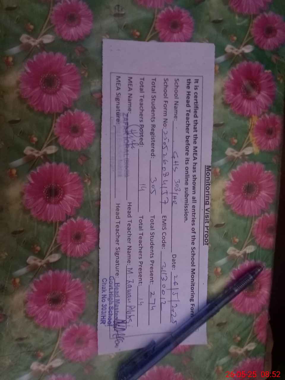 | EMIS Code: 31130012 | Name of School: GHS CHAK 303/HR | |||