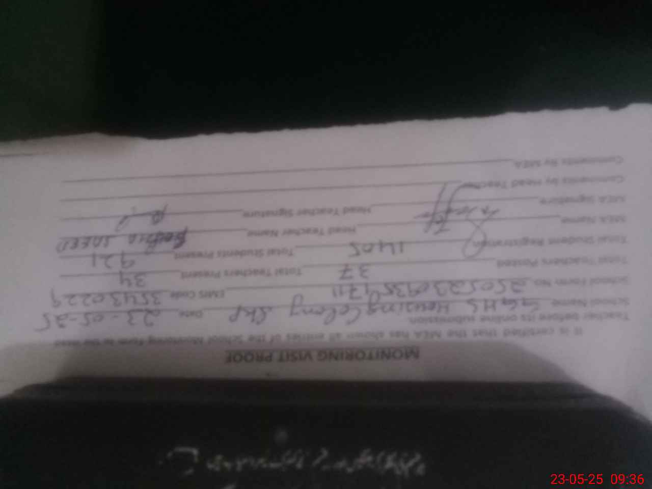 | Attendance Register | Head Teacher | MEA with School | Visit Proof |
