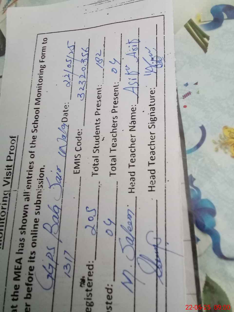 | Name: As**** Ar**** Designation: (School Headmaster's/Headmistress's) PST Phone/Cell Number: 03**** |