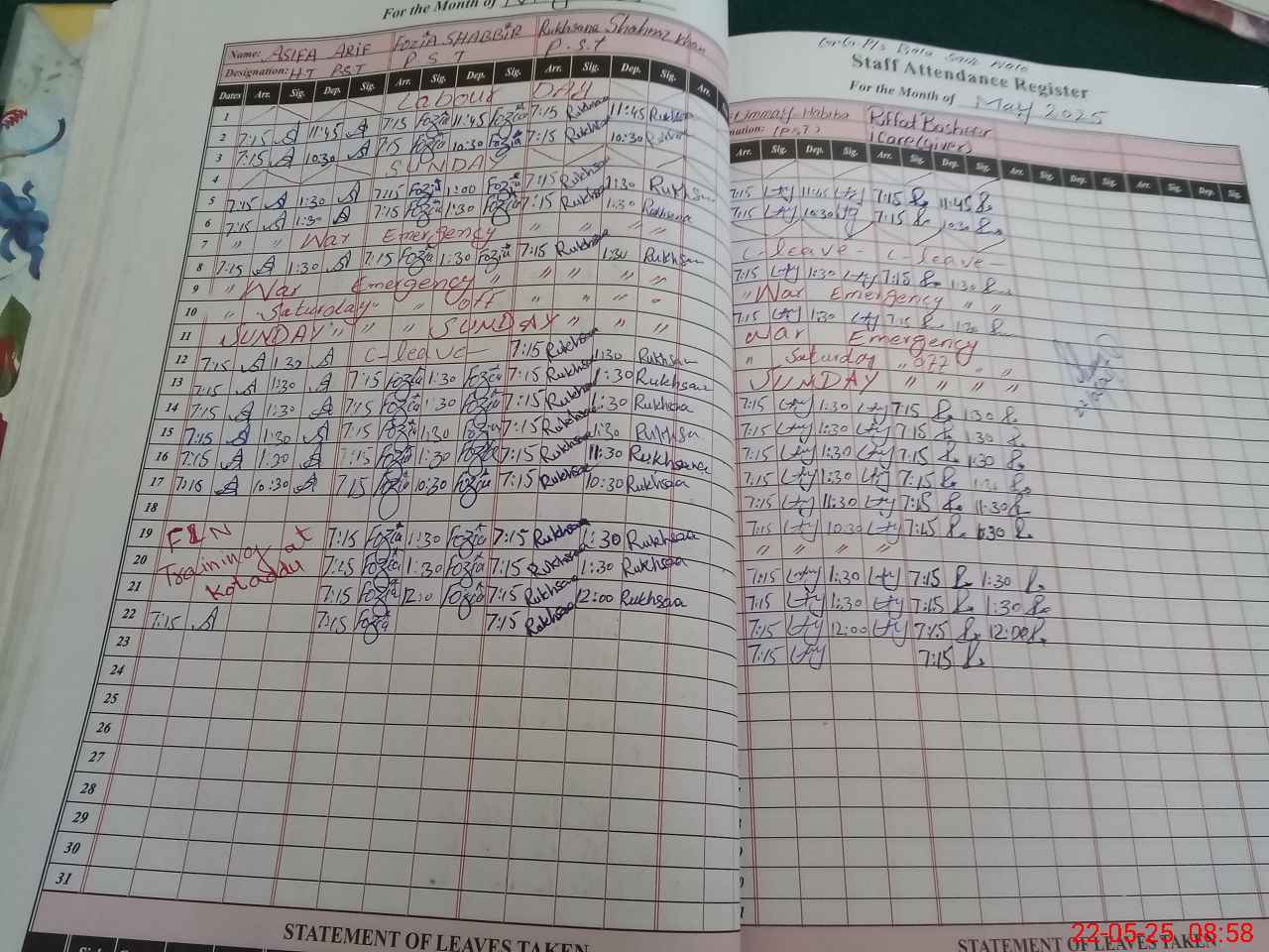 | Leave | Duty | Absent | Maternity | Medical | Ex- Pak |