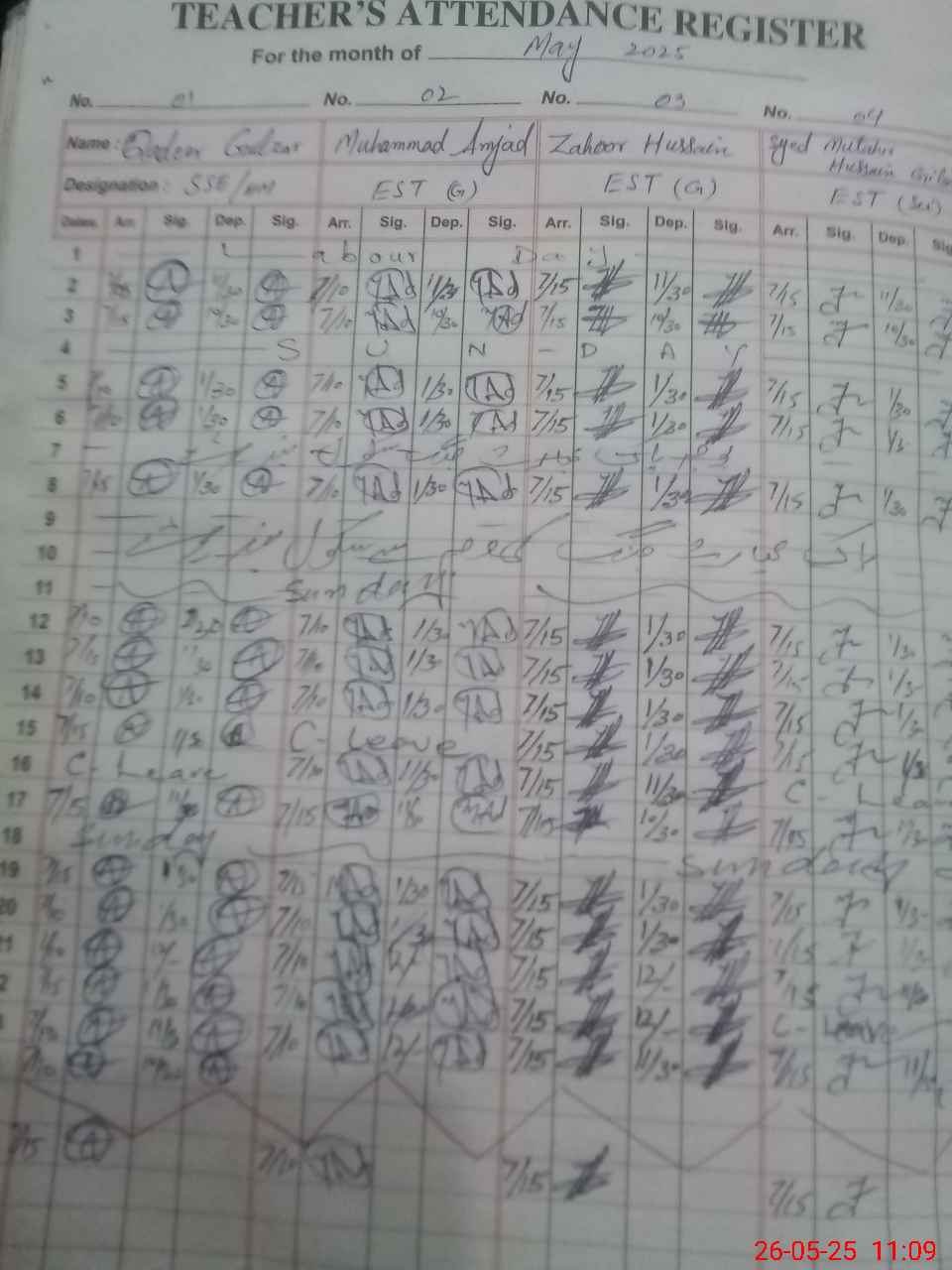 | CNIC | Full Name | Designation | R/C | Absence During Last Calender Month |