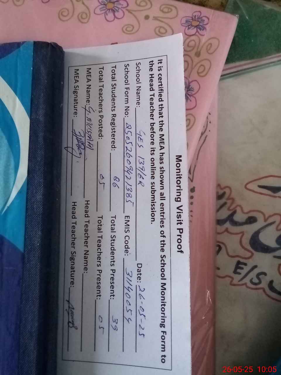 | EMIS Code: 31140054 | Name of School: GES CHAK NO. 139/6-R | |||