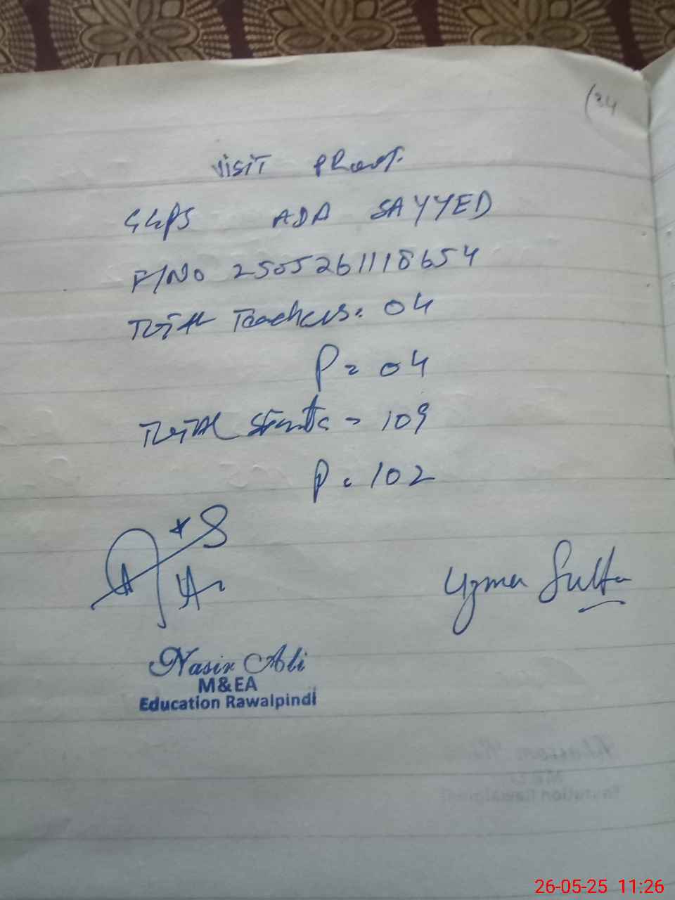 | EMIS Code: 37360539 | Name of School: GGPS ADA SAYYED | |||