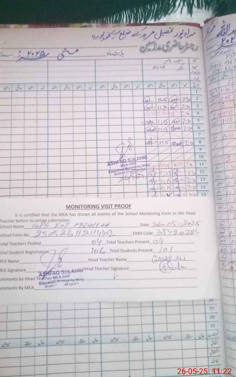 | EMIS Code: 35420284 | Name of School: GPS KOT ABDULLAH | |||