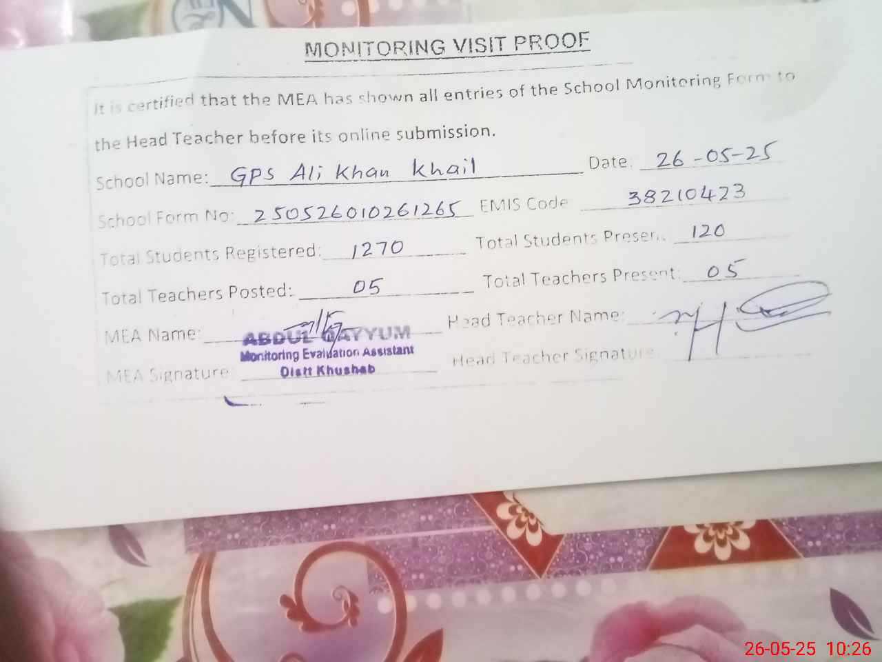 | EMIS Code: 38210423 | Name of School: GPS ALI KHAN KHAIL | |||
