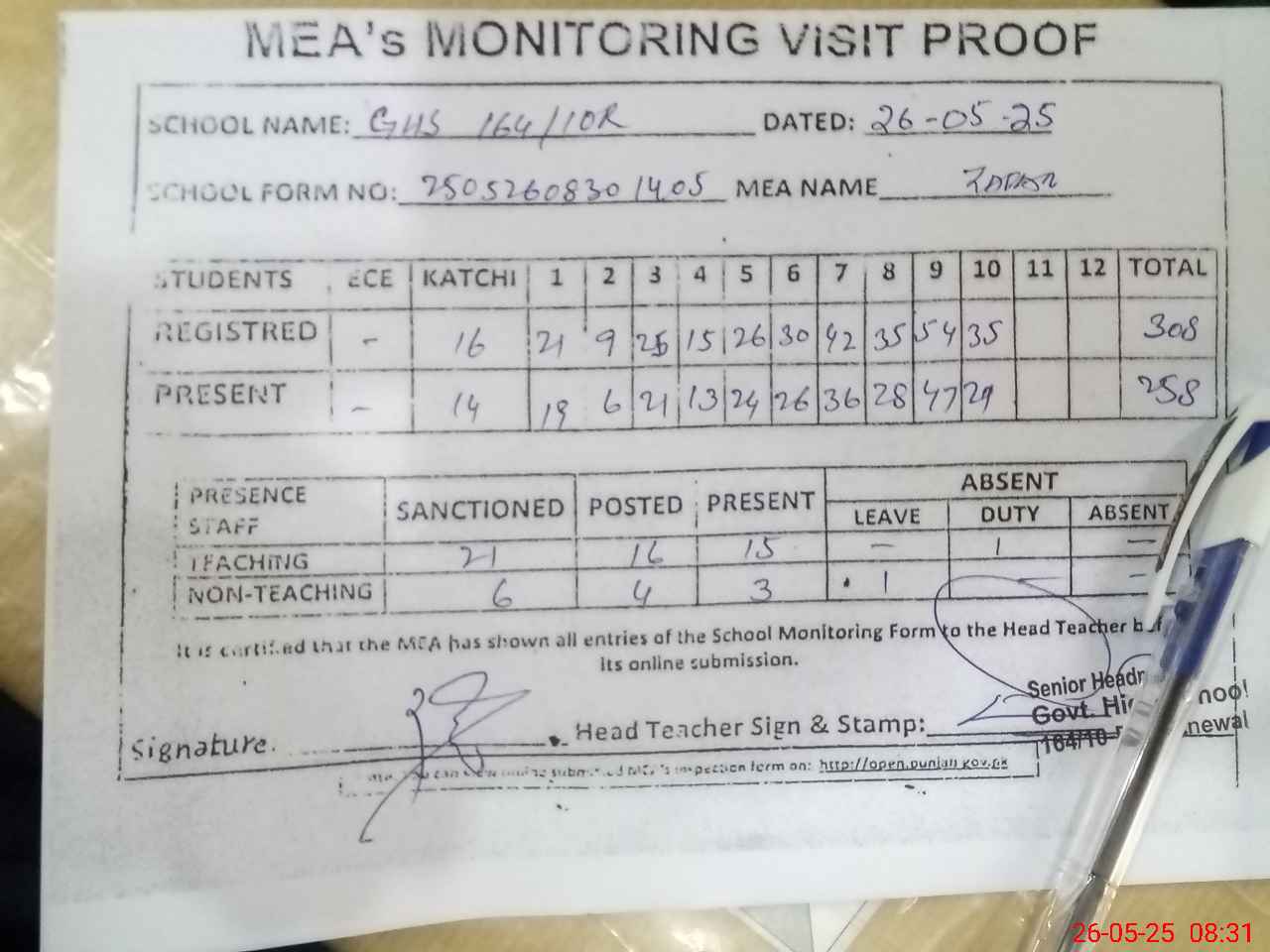 | EMIS Code: 36420012 | Name of School: GHS 164/10-R, KHANEWAL | |||