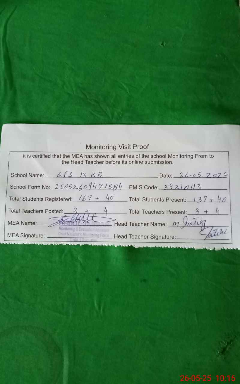 | EMIS Code: 39210113 | Name of School: GPS 13 KB | |||