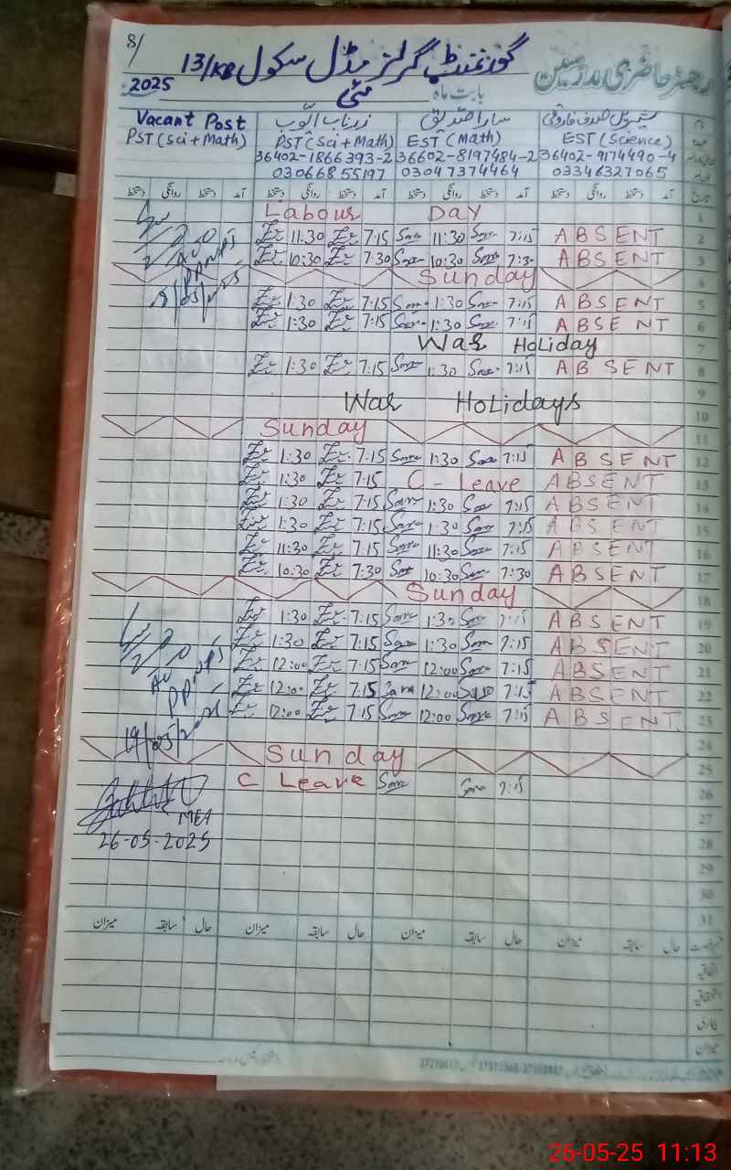 | 36**** | Sh**** Sa**** Fa**** | 1 | 0 | 0 | 30 | 0 | 0 | 0 | 0 | 0 | 0 | Absent (Un-Authorized) | |