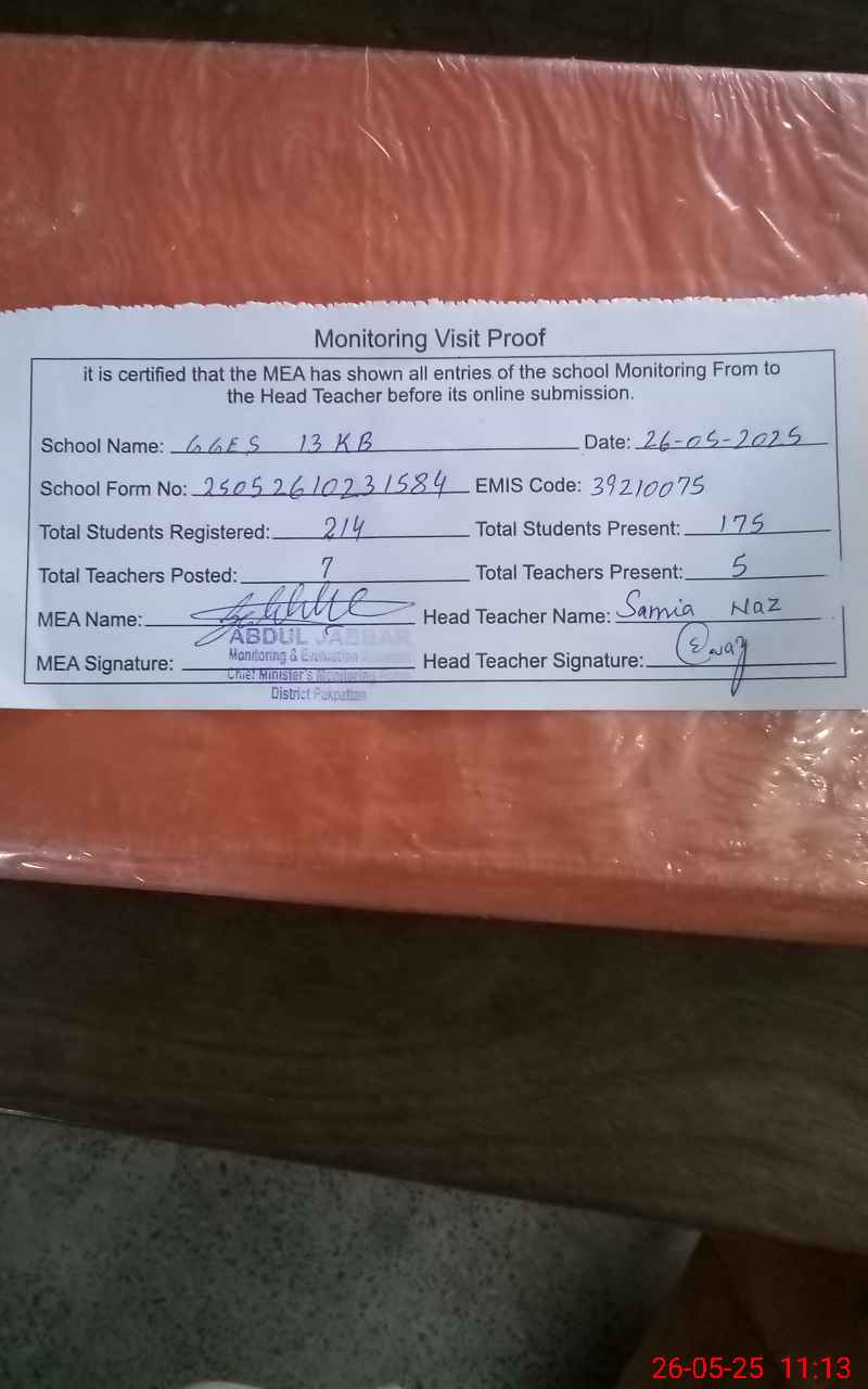 | EMIS Code: 39210075 | Name of School: GGES 13 KB | |||