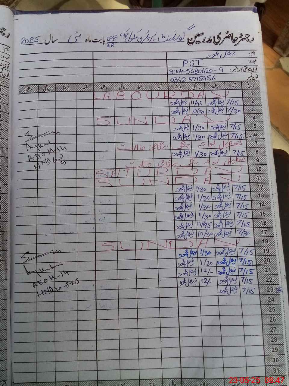| Name: MU**** Ar**** Designation: (School Headmaster's/Headmistress's) Pst Phone/Cell Number: 03**** |
