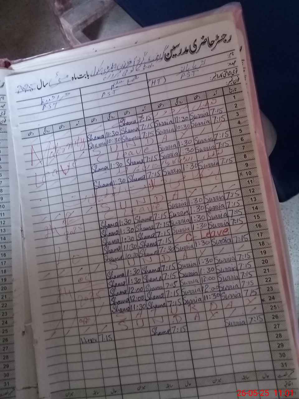 | CNIC | Full Name | Designation | R/C | Absence During Last Calender Month |