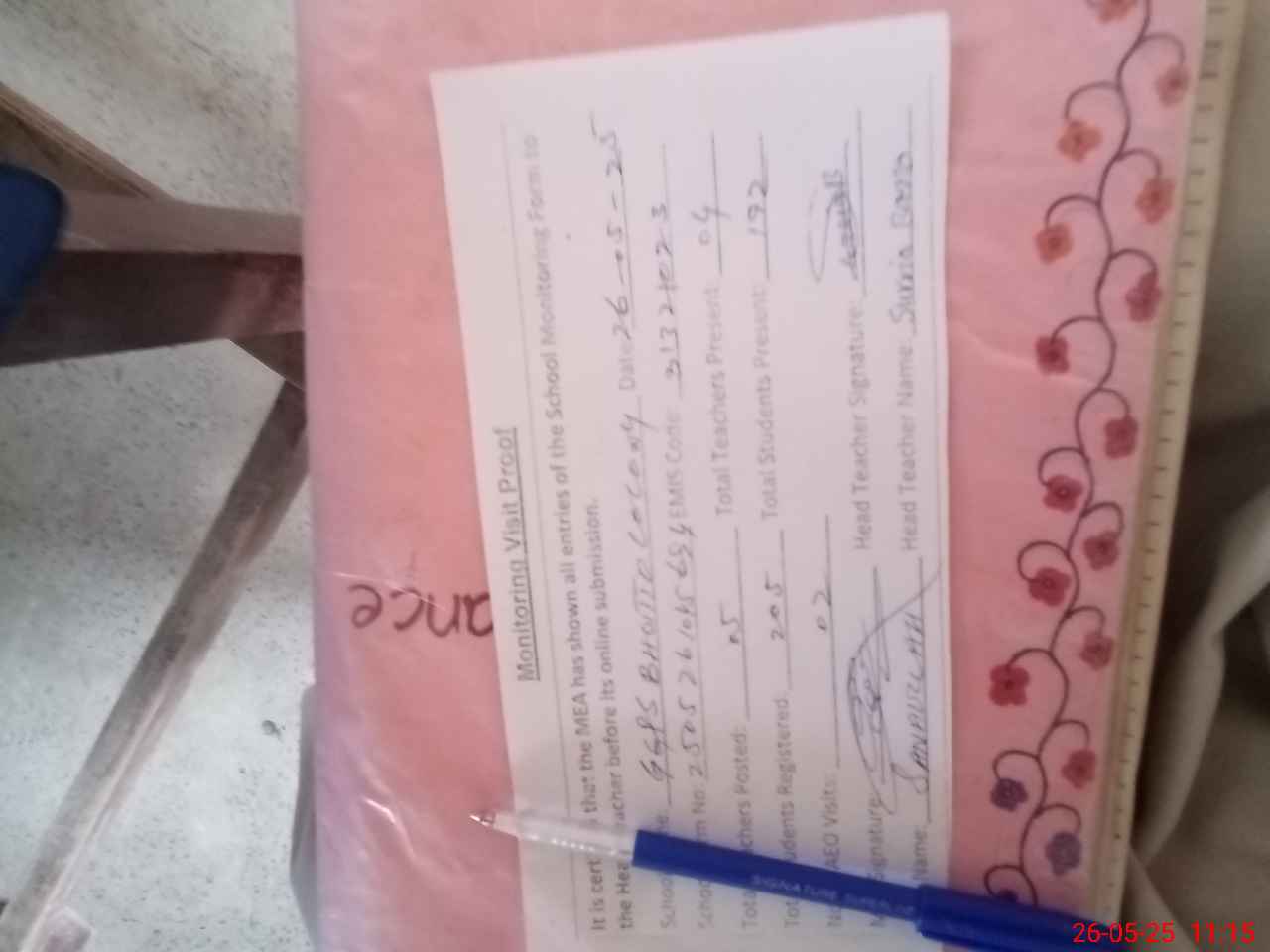 | Certified that this School was Inspected by the Undersigned MEA/DMO Today and the Information Stated Above is as Per Record. | |||||
