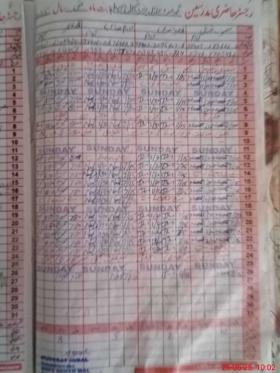 | CNIC | Full Name | Designation | R/C | Absence During Last Calender Month |