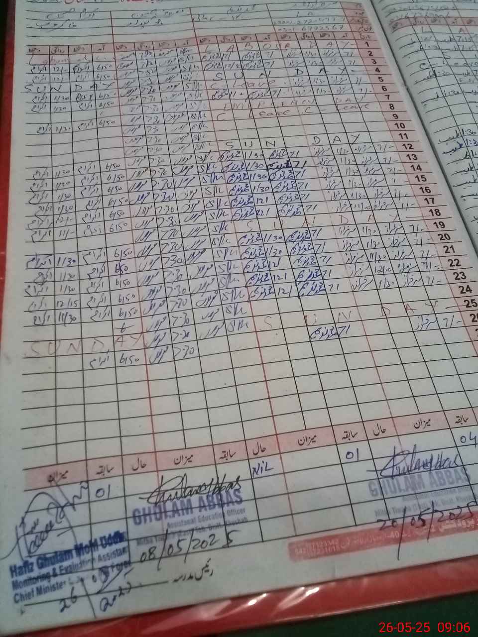 | CNIC | Full Name | Designation | R/C | Absence During Last Calender Month |