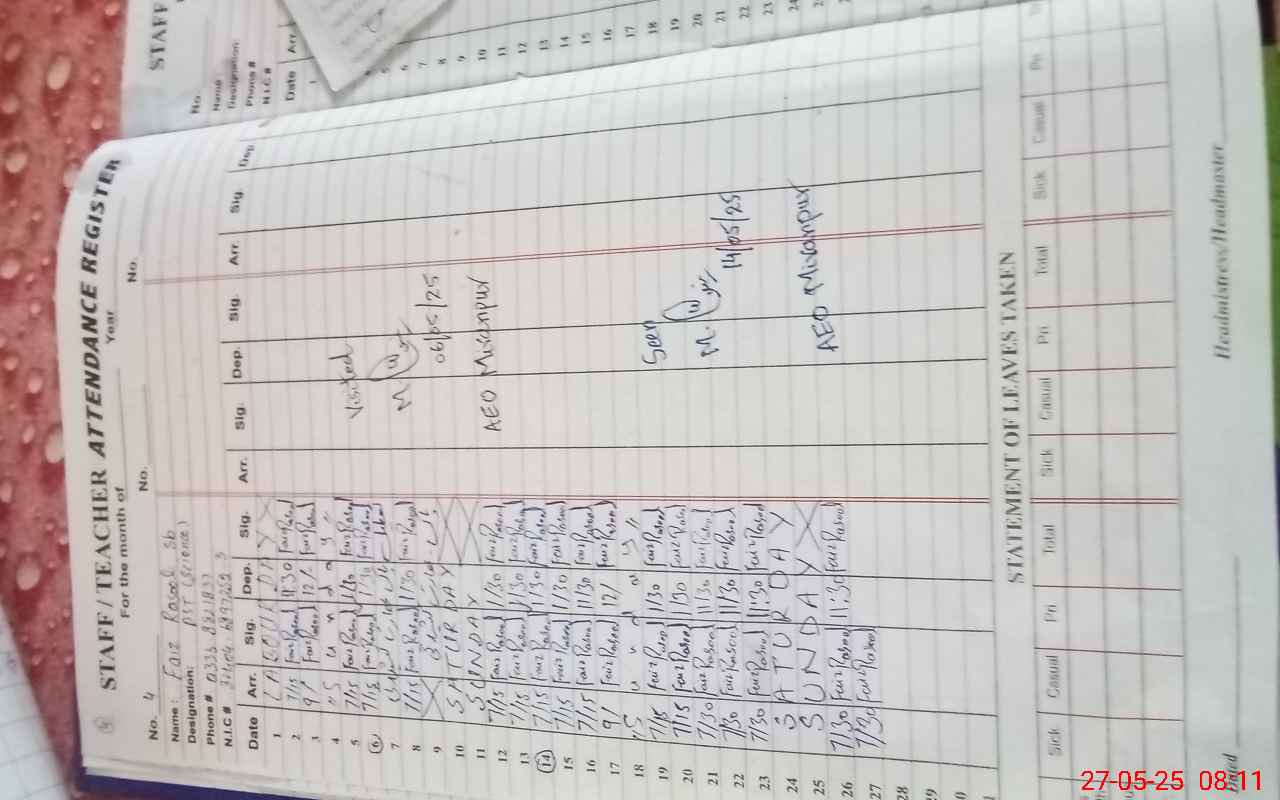 | Name: Sa**** Al**** Designation: (School Headmaster's/Headmistress's) PST Head Phone/Cell Number: 03**** |