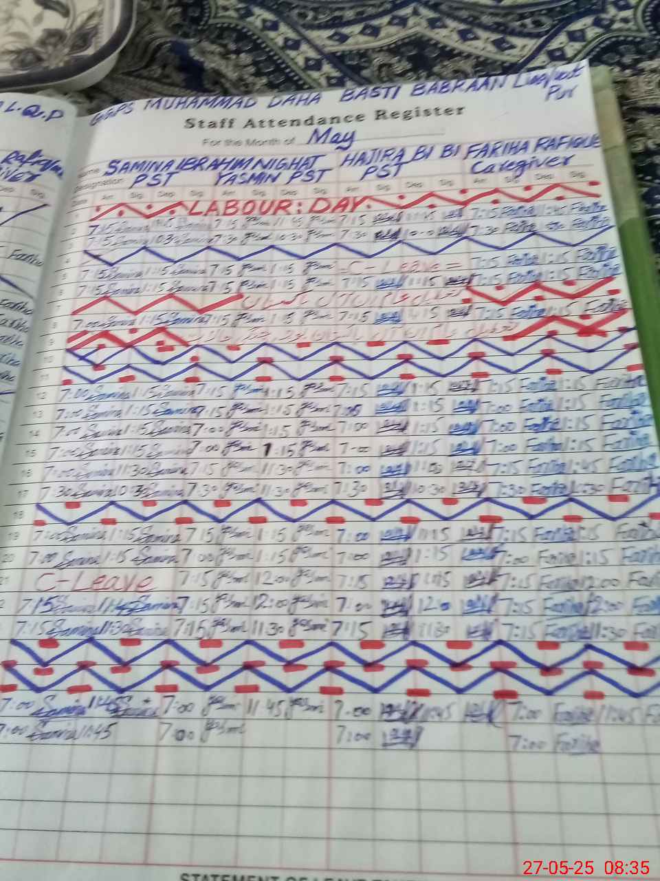 | Leave | Duty | Absent | Maternity | Medical | Ex- Pak |