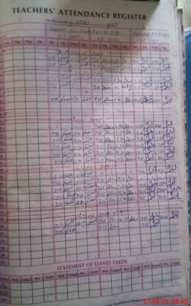 | 37**** | Fa**** Ko**** | PST | Regular | 0 | 0 | 0 | 0 | 0 | 0 | 0 | 0 | 0 | Maternity |
