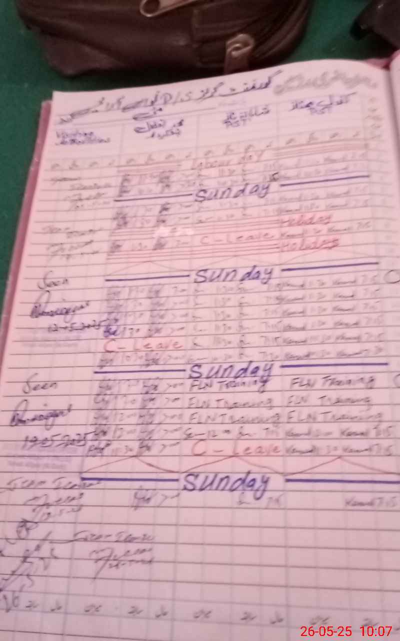 | CNIC | Full Name | Designation | R/C | Absence During Last Calender Month |