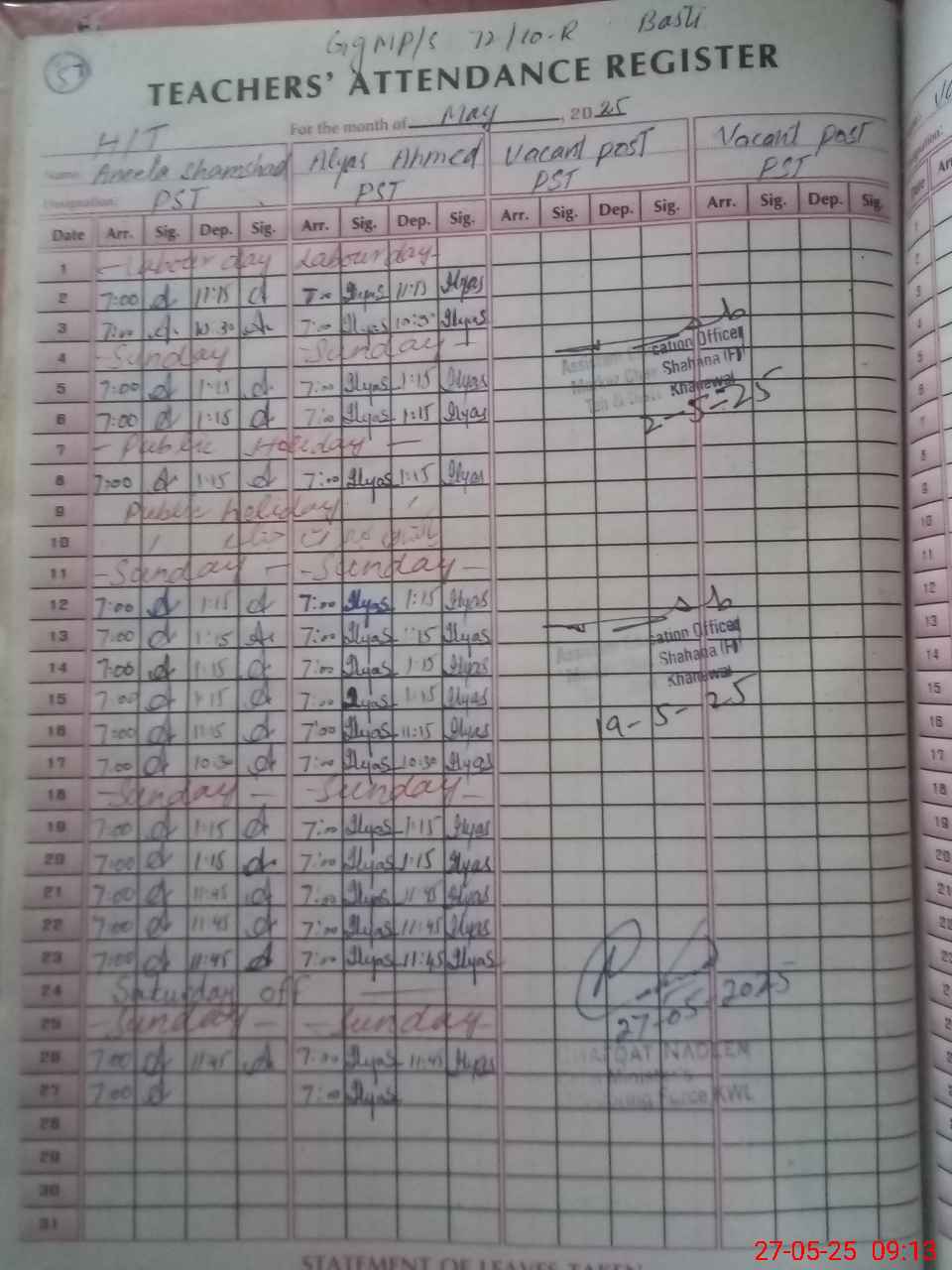 | Name: An**** Sh**** Designation: (School Headmaster's/Headmistress's) PST Phone/Cell Number: 03**** |