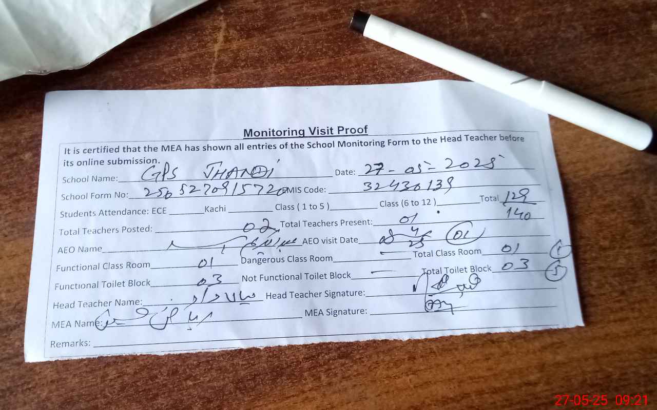 | Attendance Register | Head Teacher | MEA with School | Visit Proof |