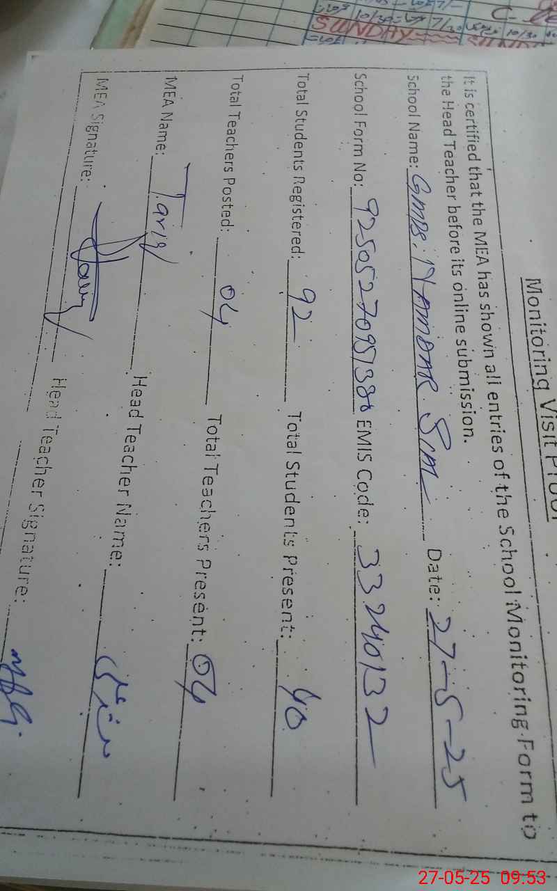 | EMIS Code: 33240132 | Name of School: GMPS NAMDAR SIAL | |||