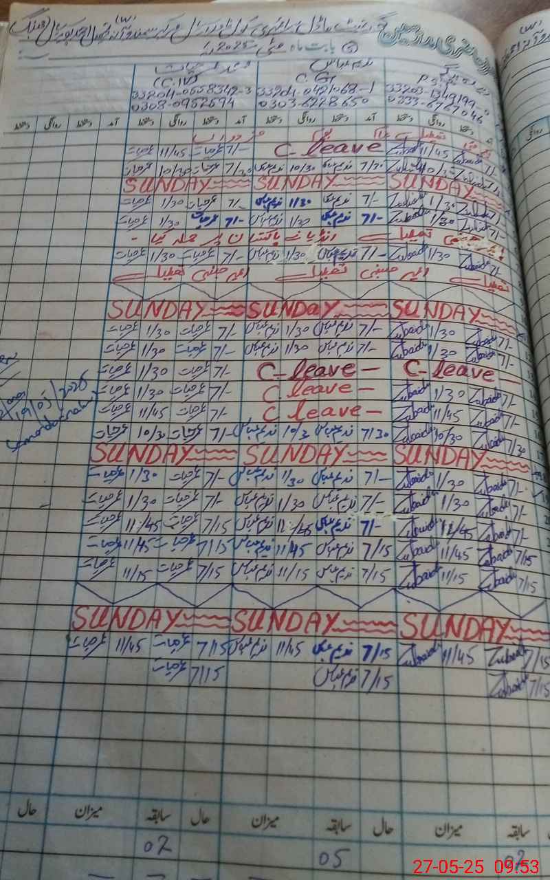 | CNIC | Full Name | Designation | R/C | Absence During Last Calender Month |