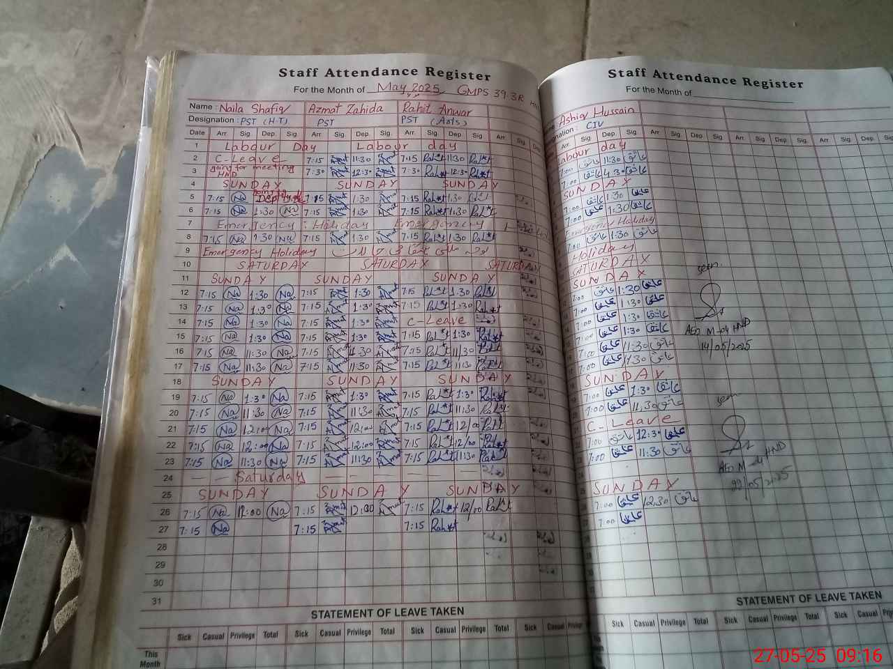 | Leave | Duty | Absent | Maternity | Medical | Ex- Pak |