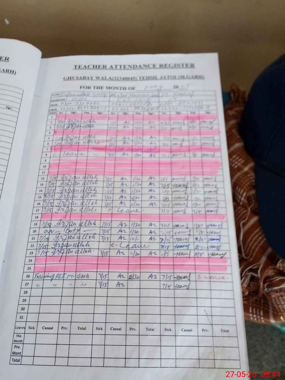 | Name: IR**** UL**** TA**** Designation: (School Headmaster's/Headmistress's) S.S.T.(GEN) Phone/Cell Number: 03**** |