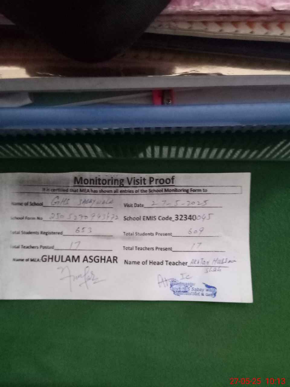| EMIS Code: 32340045 | Name of School: GHS SABAY WALA | |||